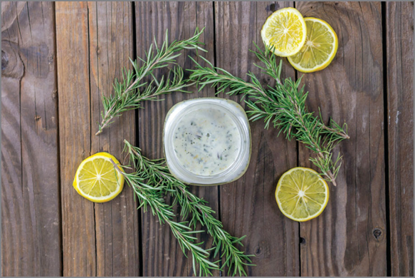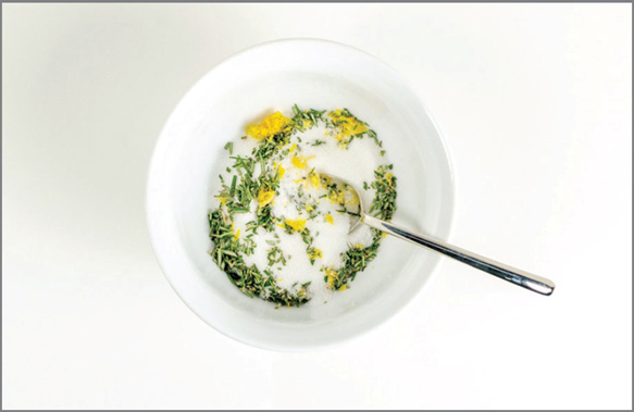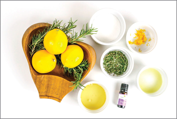 Add the lemon zest and chopped rosemary to the sugar. Mix to combine. The lemon zest has natural oils that gently cleanse the skin, the rosemary has antibacterial benefits, and the sugar exfoliates and moisturizes.