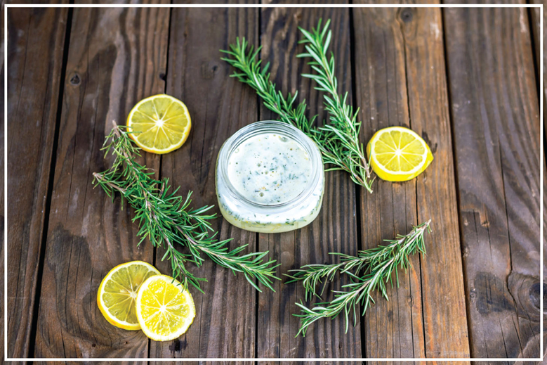Skip the gloves. Digging in the dirt with your bare hands will make you happier.* Research has shown that a strain of bacterium in soil, Mycobacterium vaccae, triggers the release of serotonin. Serotonin is a natural compound in our blood that elevates mood and decreases anxiety. So get your hands dirty! After a little garden therapy, your hands will need a good scrubbing. I love the combination of rosemary, lemon, and olive oil in this hand scrub. Each ingredient benefits the skin and senses. Gardener’s hand scrub gently removes dirt, grime, and plant oils from hands while leaving them wonderfully soft.
